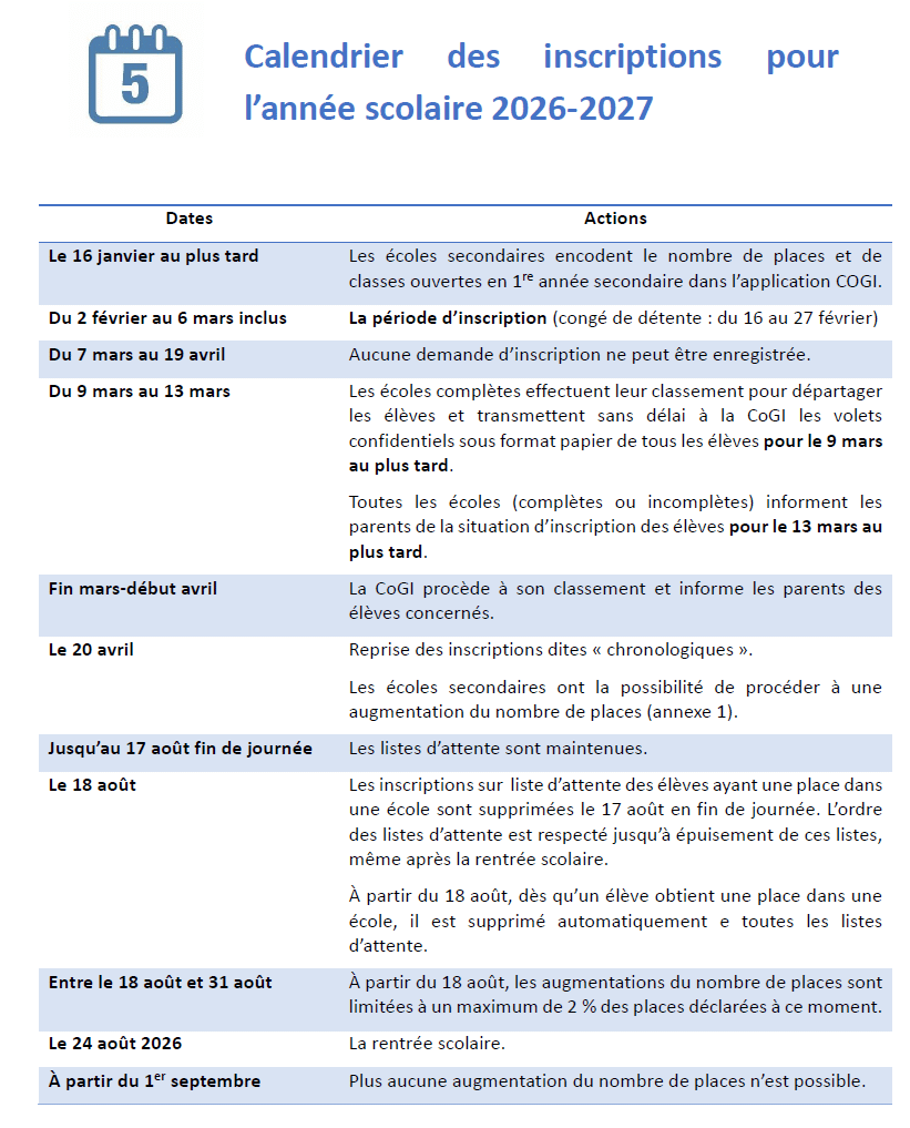 La période des inscriptions en 1e année se situe entre le 2 février et le 6 mars 2026.